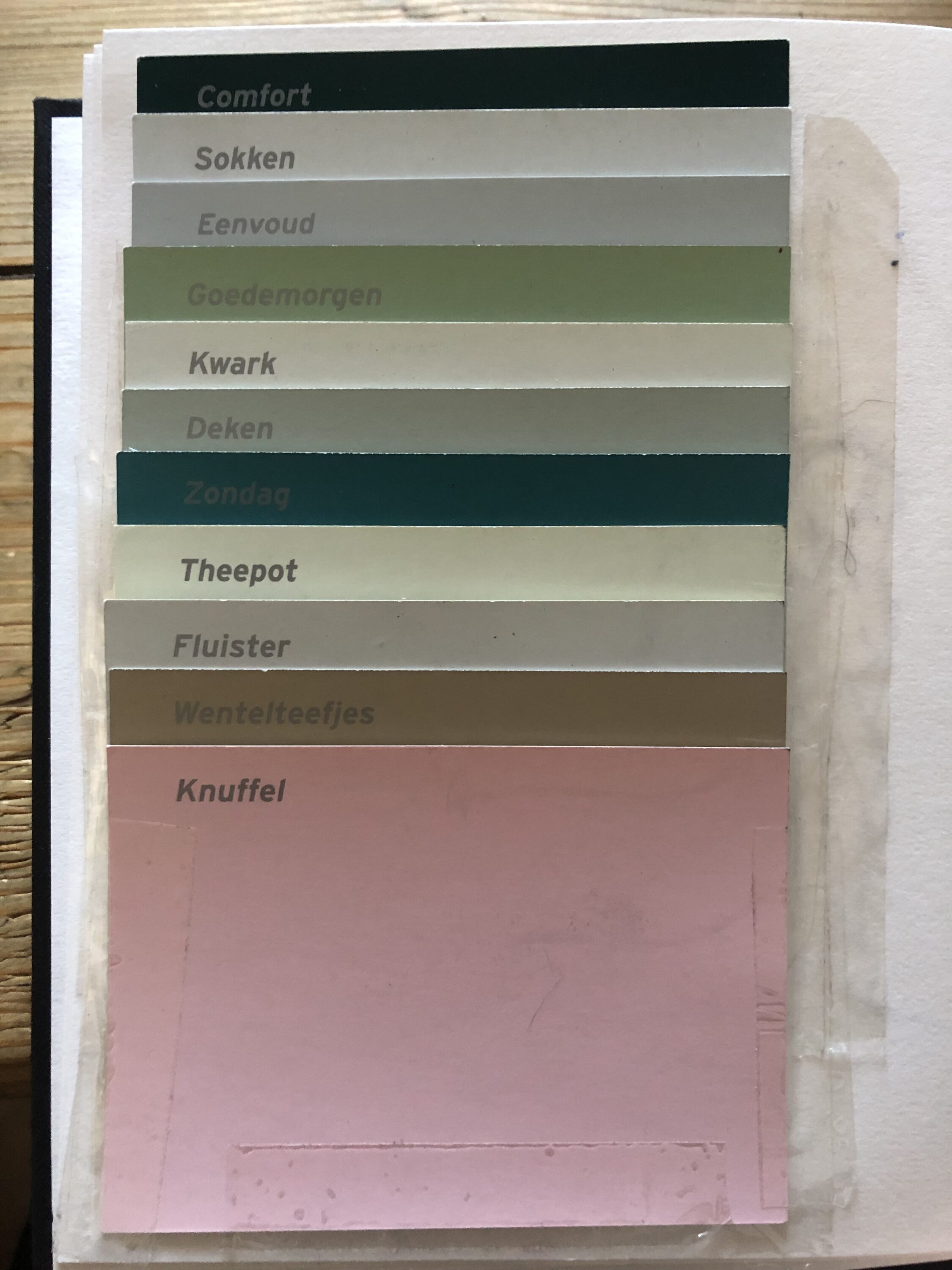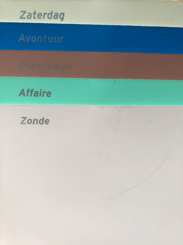 Deze set kleurkaartjes van de Gamma maken samen een scenario. Dit is hoe een ochtend eruit ziet in kleur. Rustig wakker worden op een winterdag weergegeven in kleur, volgens de Gamma.
