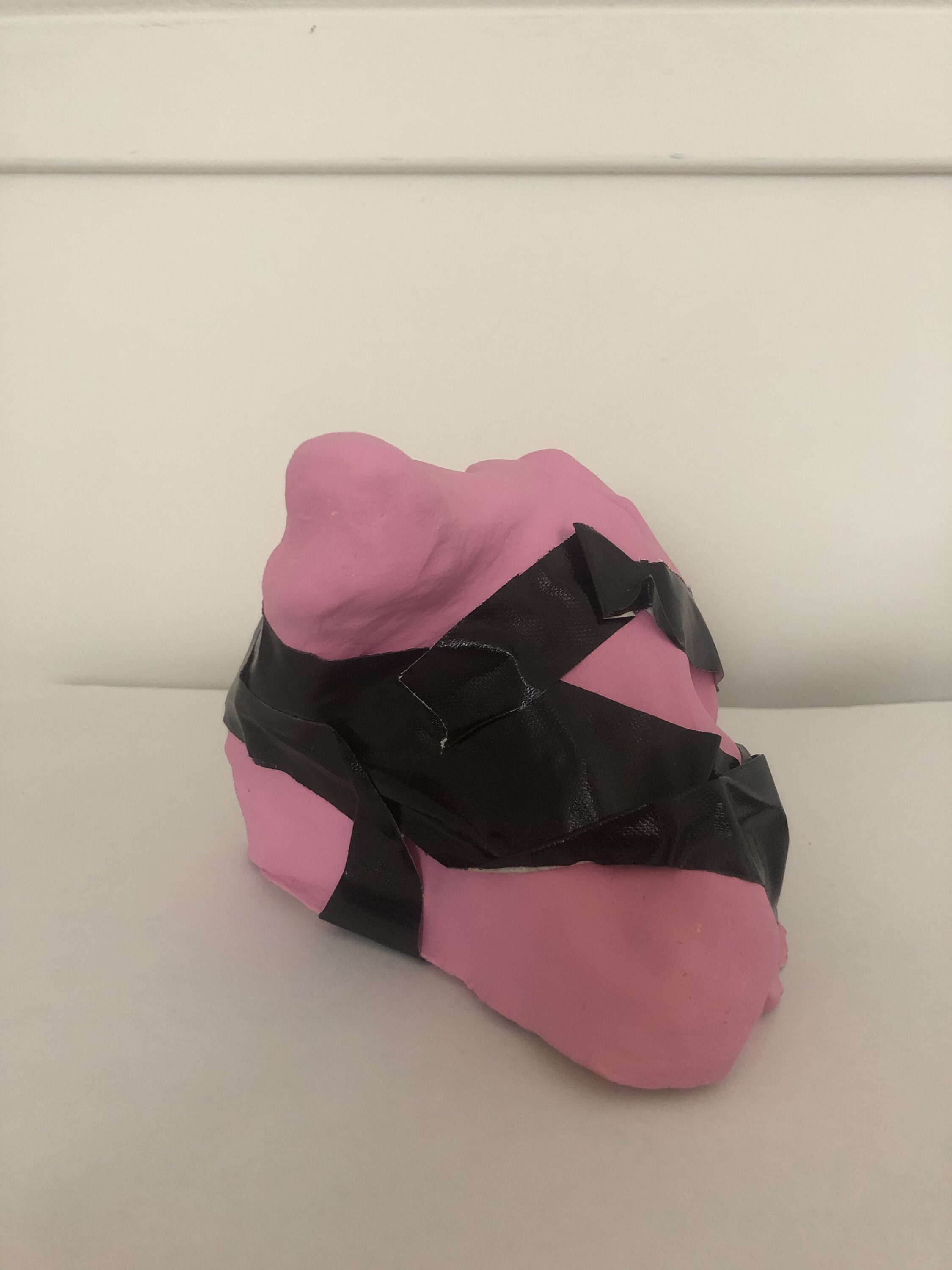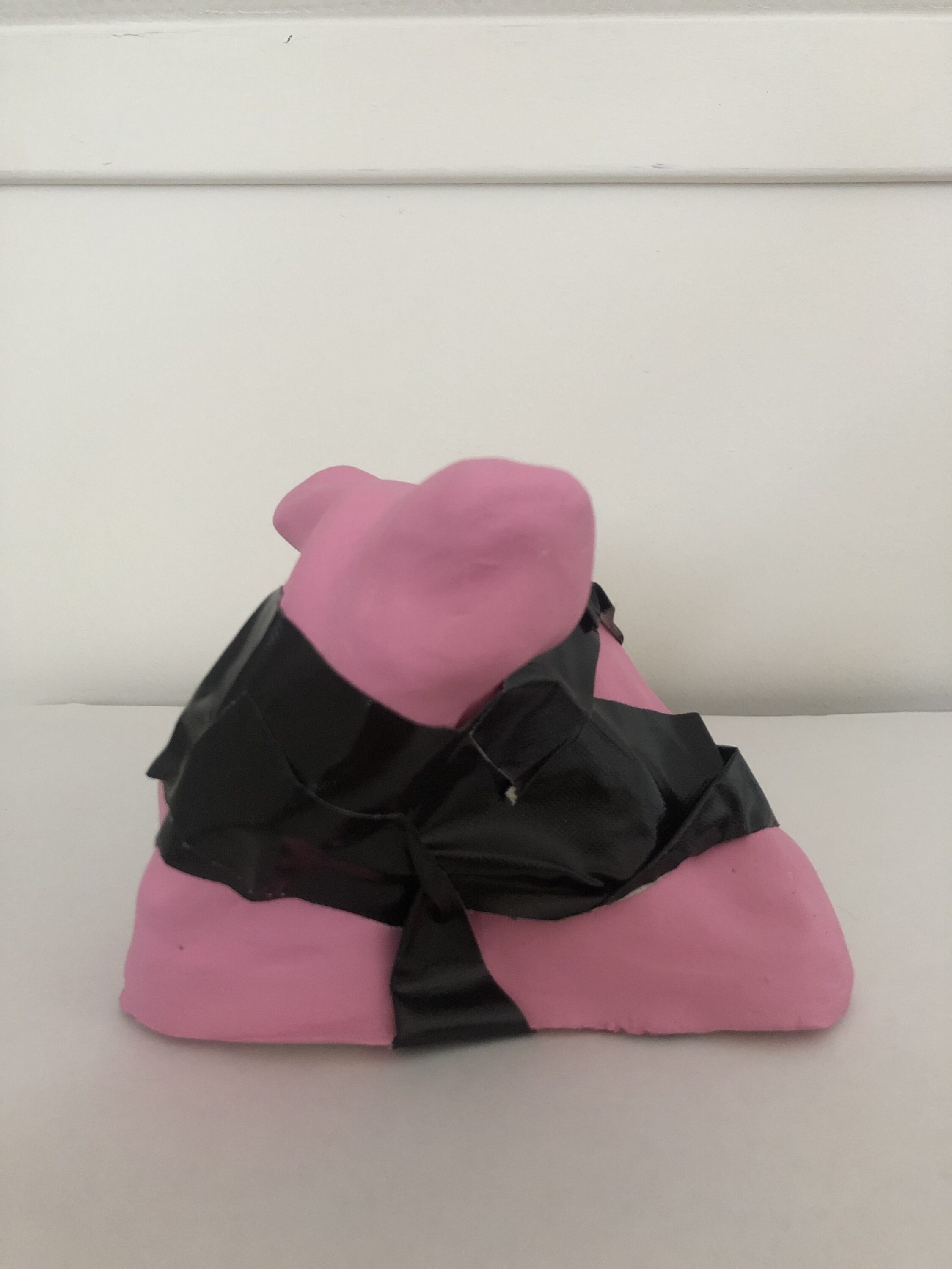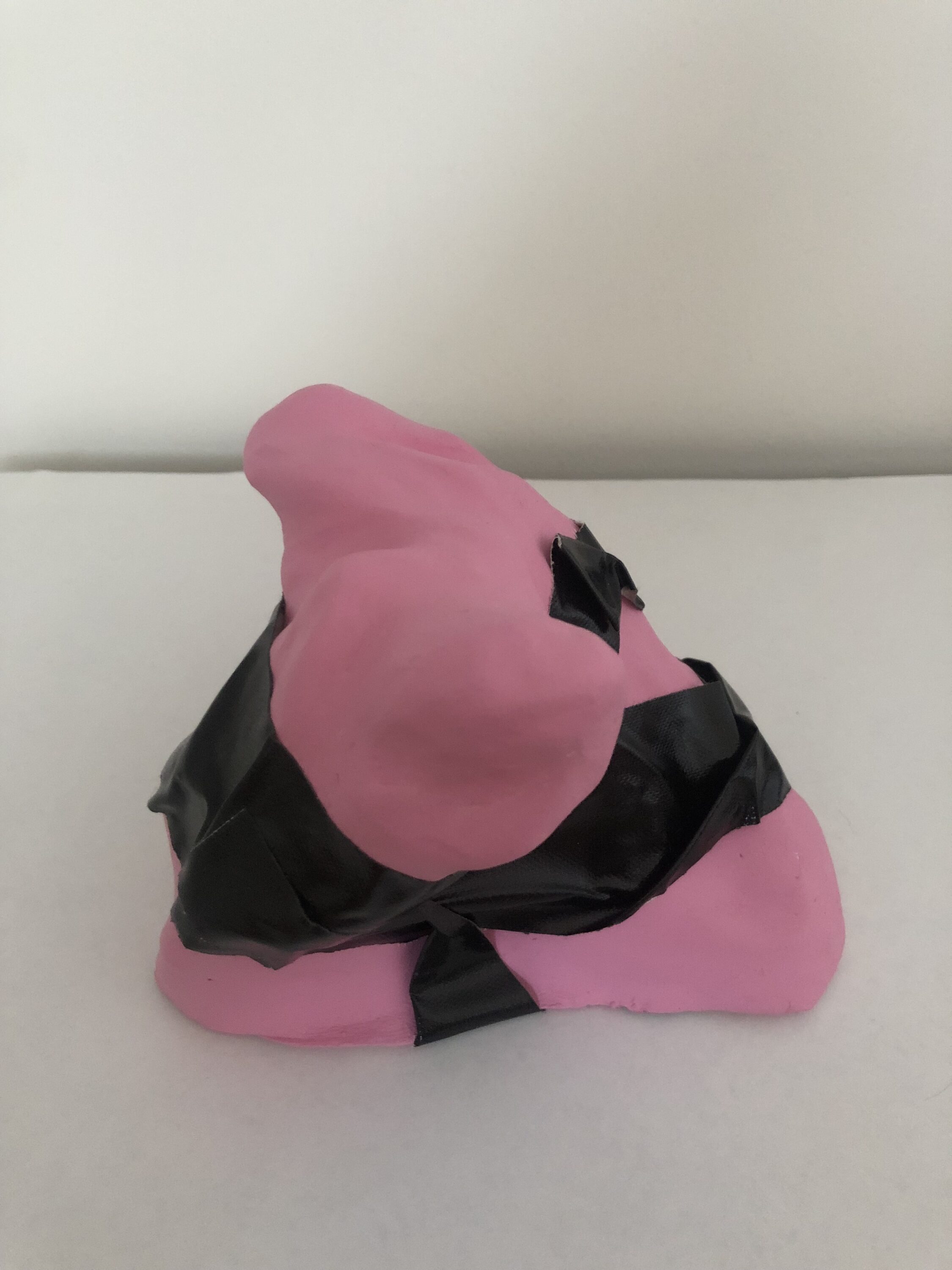 Dit keramische werk is gebaseerd op de seksdroom. Vaak heb ik in deze dromen seks met iemand anders dan mijn partner. Deze personen ken ik, en/of voel ik totaal geen aantrekking tot. De droom was prettig en gaf me wellicht een orgasme, maar wanneer ik wakker word schaam ik me rot en zie ik die persoon het liefst nooit meer. De tegenstrijdigheid van genot en schaamte heb ik geprobeerd vast te leggen. De vorm ontstond door mijn armen in elkaar te draaien en zo kreeg ik het idee: het genot en de schaamte komen voort uit een gedeelde gebeurtenis, maar zijn tegenstrijdige gevoelens. De vorm is een geheel dat uiteindelijk de tegengestelde kanten op gaat. Het is abstract, maar er kunnen ook twee mensen in gezien worden die in elkaar verweven zijn (seks) maar toch een andere kant op willen (gevoel). Van boven ziet het beeld er ook een beetje fallisch uit. Het beeld werd roze voor vrouwelijkheid, tederheid, sensualiteit en ook een beetje geslachtsdeelkleur. De slordig opgeplakte duct tape op de klei geeft een oncomfortabel en ongemakkelijk gevoel, en contrasteert met het zachtroze, om zo de dualiteit te benadrukken.