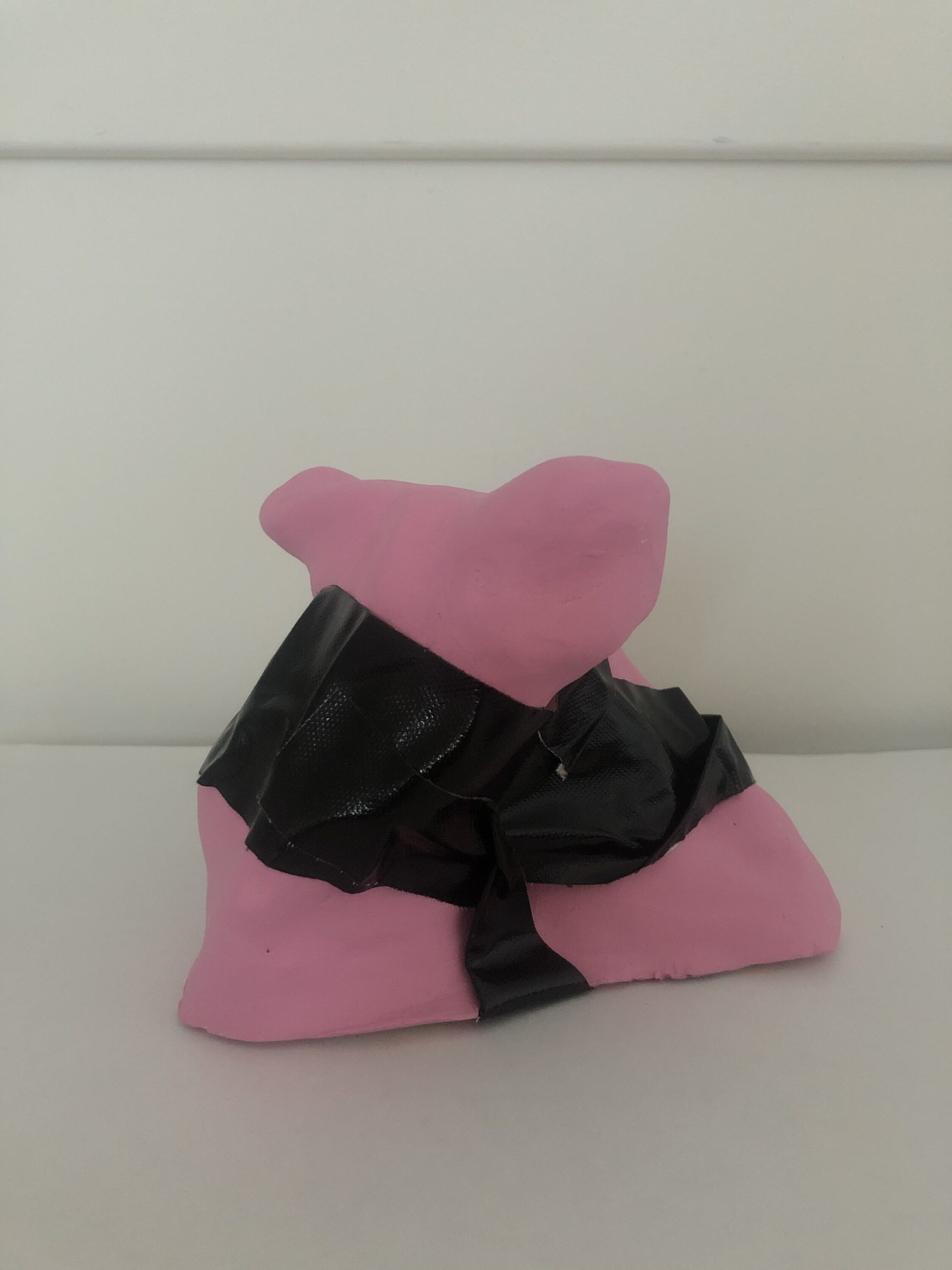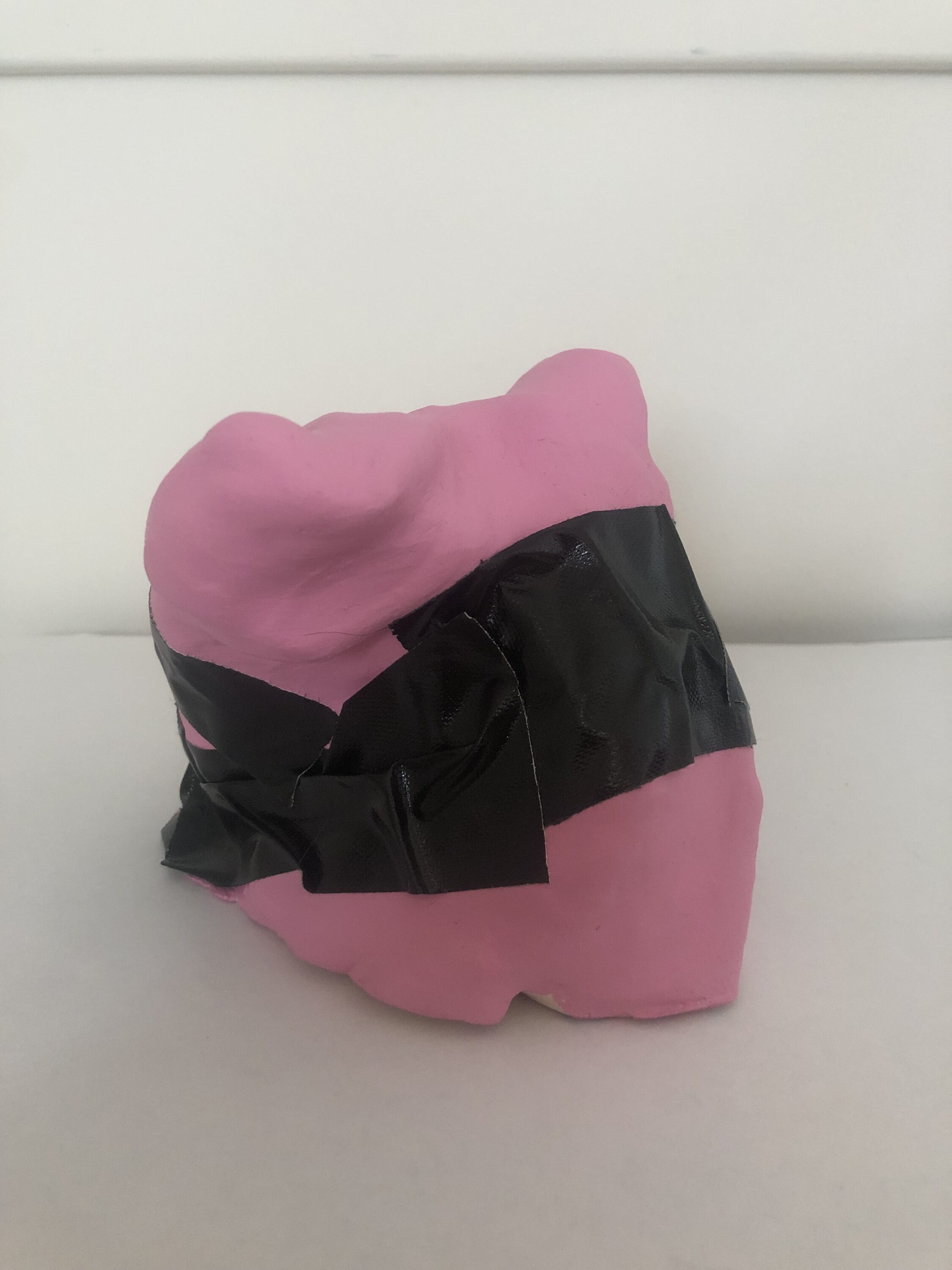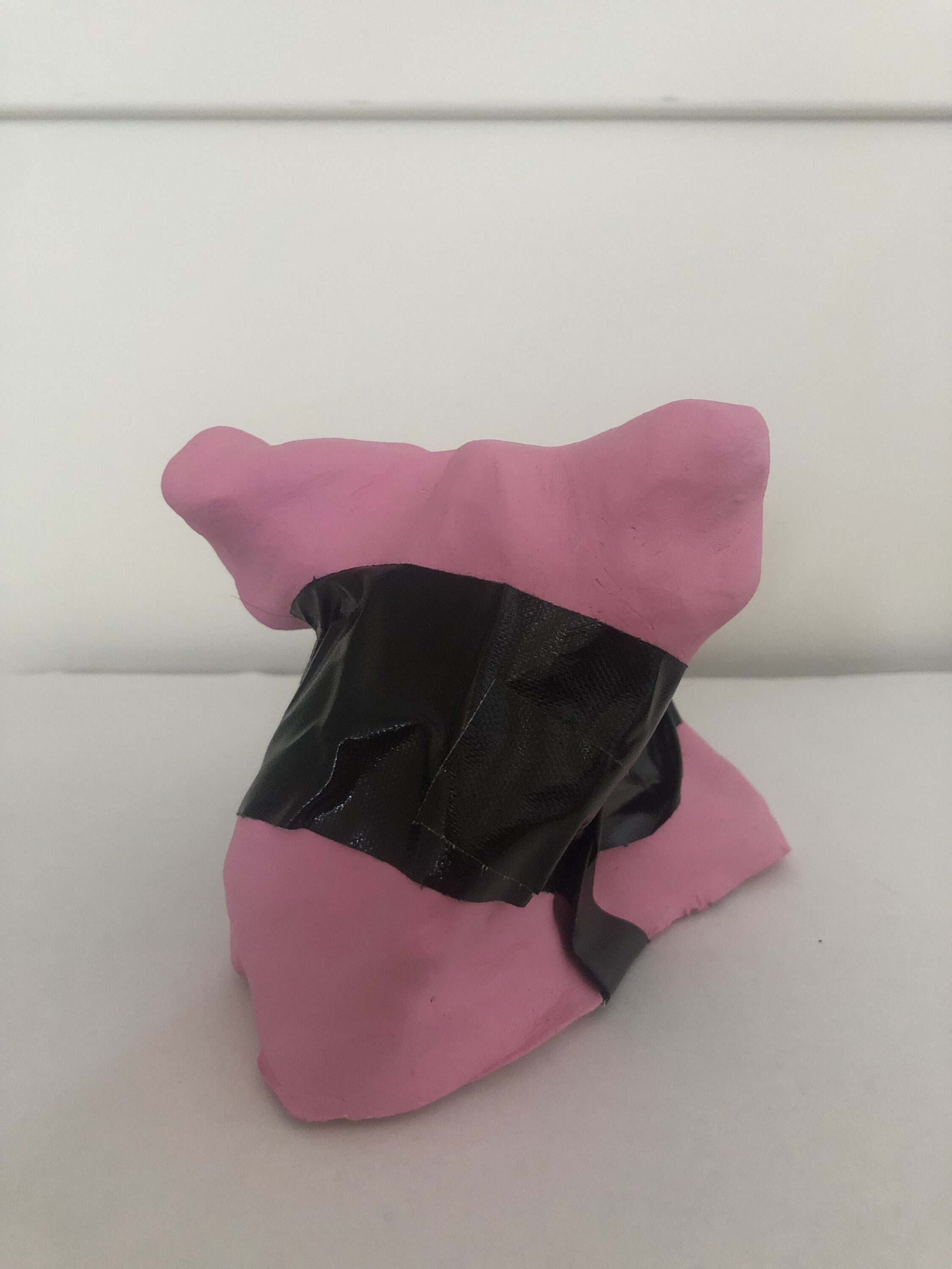 Dit keramische werk is gebaseerd op de seksdroom. Vaak heb ik in deze dromen seks met iemand anders dan mijn partner. Deze personen ken ik, en/of voel ik totaal geen aantrekking tot. De droom was prettig en gaf me wellicht een orgasme, maar wanneer ik wakker word schaam ik me rot en zie ik die persoon het liefst nooit meer. De tegenstrijdigheid van genot en schaamte heb ik geprobeerd vast te leggen. De vorm ontstond door mijn armen in elkaar te draaien en zo kreeg ik het idee: het genot en de schaamte komen voort uit een gedeelde gebeurtenis, maar zijn tegenstrijdige gevoelens. De vorm is een geheel dat uiteindelijk de tegengestelde kanten op gaat. Het is abstract, maar er kunnen ook twee mensen in gezien worden die in elkaar verweven zijn (seks) maar toch een andere kant op willen (gevoel). Van boven ziet het beeld er ook een beetje fallisch uit. Het beeld werd roze voor vrouwelijkheid, tederheid, sensualiteit en ook een beetje geslachtsdeelkleur. De slordig opgeplakte duct tape op de klei geeft een oncomfortabel en ongemakkelijk gevoel, en contrasteert met het zachtroze, om zo de dualiteit te benadrukken.